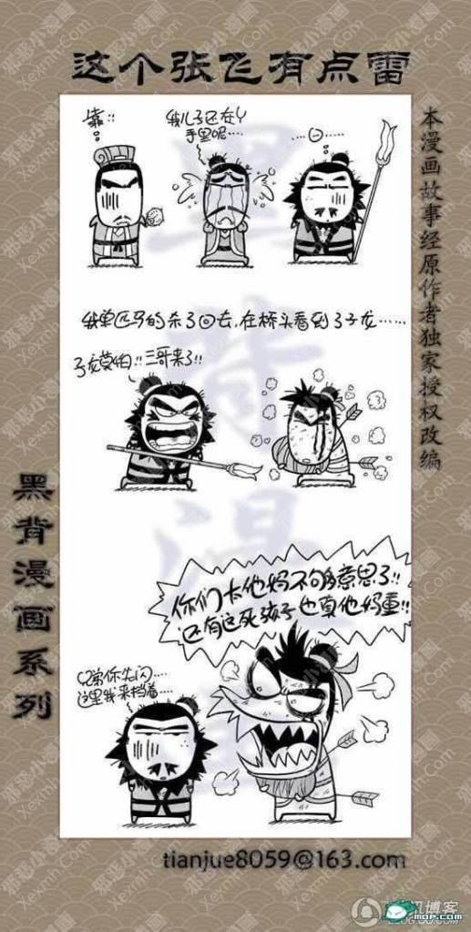 猛张飞看似粗犷,但心思也是非常细密的!刘关张好基友,腹黑的孔明,娘炮的子龙,龌龊的魏延,原来三国也是可以如此可爱的。